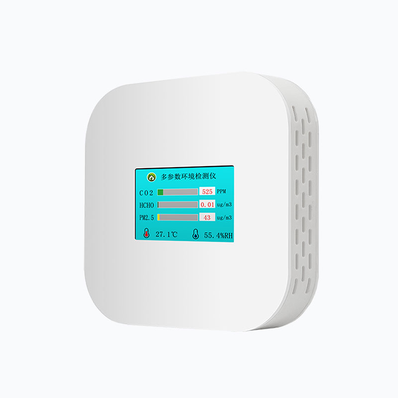 130*130*37mm尺寸,检测氧气、CO2、氨气、硫化氢、臭气、烟度、温湿度、光照度、气压、噪音、冷媒泄露等,适用于公厕臭气、五恒系统等场景,提供RS485、WIFI、4G、LORA、以太网等多种传输方式,12~24V供电,支持墙面或吸顶安装